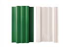 Металлический штакетник двухсторонний прямой RAL 6005 предназначен для строительства забора на дачном участке. Сделан из оцинкованной стали. Боковые края штакетника завальцованы. Это гарантирует безопасность, предотвращая возможные порезы. П-образная форма и 12 рёбер жесткости делают профиль жестким на изгиб. Полимерное покрытие RAL 6005 Зеленый мох.